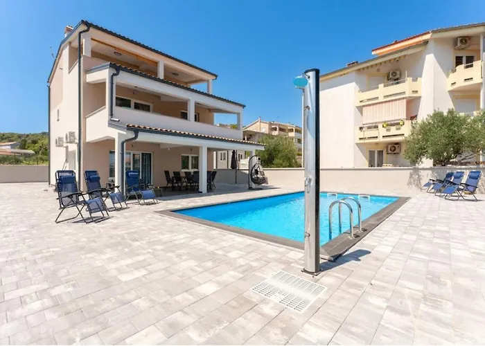 Zdrelac 6 bus stop is also near this 4-bathroom villa. The Banj property has a terrace to relax on after a busy day, along with a seasonal outdoor pool.